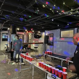 Good drinks, good service, good food. Casual local bar to hang out with all walks of life. Everyone here is friendly and welcoming. Our bartenders were great! free pool and beer pong, corn hole, karaoke on Fridays. Try the sausage dog it's crazy good. Fun atmosphere with a a patio-vibe. Don't let the location or exterior fool you, this place is fun!